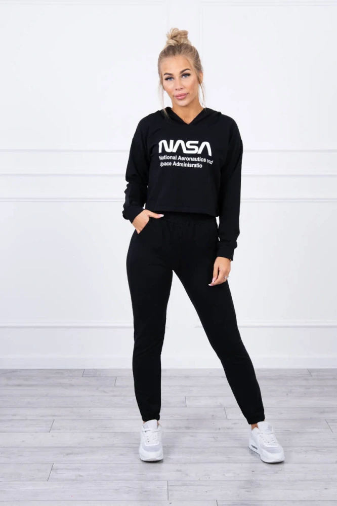 Dámska čierna NASA súprava s crop mikinou