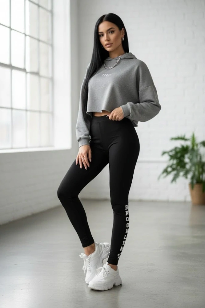 Mestský štýl nikdy nevyzeral pohodlnejšie. Dámske bavlnené legíny s nápisom Brooklyn sú výrazným kúskom, ktorý dodá vášmu outfitu moderný šmrnc a zároveň vám dopraje slobodu pohybu počas celého dňa. Kvalitný bavlnený materiál pôsobí príjemne, je mäkký na dotyk a vďaka vysokému pásu vytvára postavu lichotiaci vzhľad, ktorý zaujme na prvý pohľad.