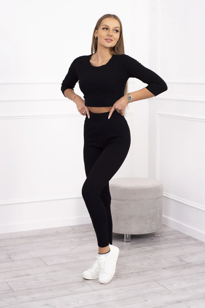 Rebrovaná čierna súprava KERI: top + legíny
